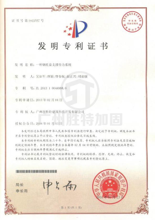 上下托盤制作:在待拔柱板面上安裝上下托盤。上、下抱柱式鋼托盤間安裝主支撐、輔支撐、千斤頂,對稱布置。運用了我司的發明專利: