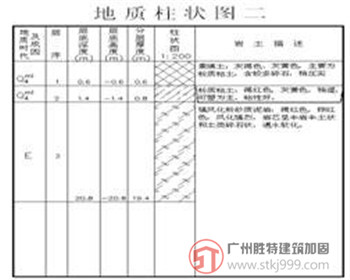 場(chǎng)地地基由人工填土(Qml)、第四系沖淤積層(Qal)、第四系殘積層(Qel)及古近系始新統(tǒng)華涌組(E2h)“紅層”碎屑巖組成,工程地質(zhì)綜合剖面共分10層,自上而下的巖性特征分述如下:第1層,人工填土(Qml),層厚0.50~3.0m,平均1.56m,土層由粉質(zhì)粘土及風(fēng)化砂等回填而成,輕度壓實(shí),均勻性差,承載力低。第2層,粉質(zhì)粘土,層厚0.60~10.30m,平均3.08m,土層由粉、粘粒組成,飽和,可塑~硬塑為主,局部軟塑,含沙粒,承載力不高。第3層,淤泥質(zhì)土,層厚0.90~12.10m,平均5.54m,土層呈灰黑色,手拈粘滑,飽和,流塑,局部夾沙粒層及腐植物,承載力極低,抗剪強(qiáng)度低,為不良地基。第4層,粉砂、細(xì)砂,層厚2.0~3.1m,平均2.74m,砂土層顆粒均勻,飽和,零星分布,中密為主,局部密實(shí),含有粘性土及中粒砂,承載力低。第5層,粉質(zhì)粘土,層厚2.1~6.6m,平均4.14m,由粉、粘粒組成,飽和,可塑為主,局部軟塑或硬塑,局部含砂粒,承載力不高。第6層,中砂,層厚4.5~5.0m,平均4.75m,砂土層顆粒均勻,飽和,中密為主,局部稍密,含有較多粉細(xì)砂及粗粒砂,有一定承載力。第7層,殘積土,層厚1.0~9.1m,平均3.12m,按土性分為殘積粉質(zhì)粘土、殘積粉砂、細(xì)砂及殘積中砂、粗砂。局部分布,有一定的承載力。第8層,全風(fēng)化巖帶,層厚0.60~10.5m,平均3.66m,巖性為泥質(zhì)粉砂巖、粉砂巖、細(xì)砂巖及中砂巖,局部分布,承載力稍高。第9層,強(qiáng)風(fēng)化巖帶,層厚2.0~27.8m,平均15.95m,巖性為泥質(zhì)粉砂巖、粉砂巖、細(xì)砂巖、中砂巖及粗砂巖,層位穩(wěn)定,承載力較高,均可作預(yù)制樁基礎(chǔ)持力層。第10層,中風(fēng)化巖,層厚在6.1~17.8m,平均12.85m,巖性為泥質(zhì)粉砂巖、粉砂巖及細(xì)砂巖,承載力高。