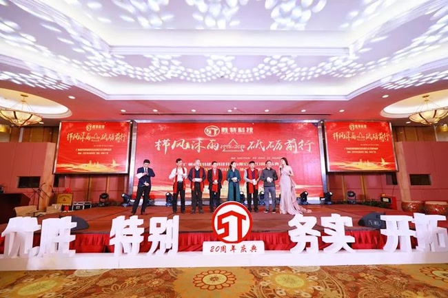 下午6點(diǎn)30分,勝特科技20周年慶典在莊嚴(yán)的國歌聲中正式開始。