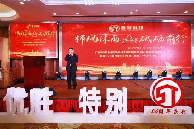 伴隨著冬日的暖陽,2019年1月14日,勝特科技20周年慶典,在廣東亞洲國際大酒店8樓會(huì)議廳隆重舉行。參加本次盛典的嘉賓包括省、市、區(qū)領(lǐng)導(dǎo)代表及建筑界的精英、行業(yè)前輩、專家、學(xué)者以及來自全國各地的嘉賓、勝特和勝力全體員工共約400余位。