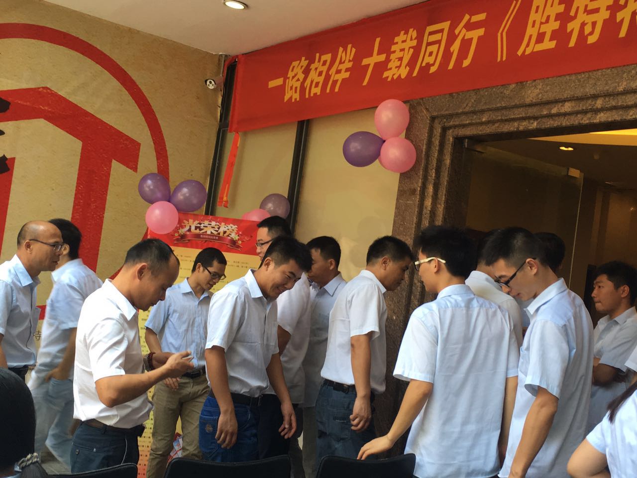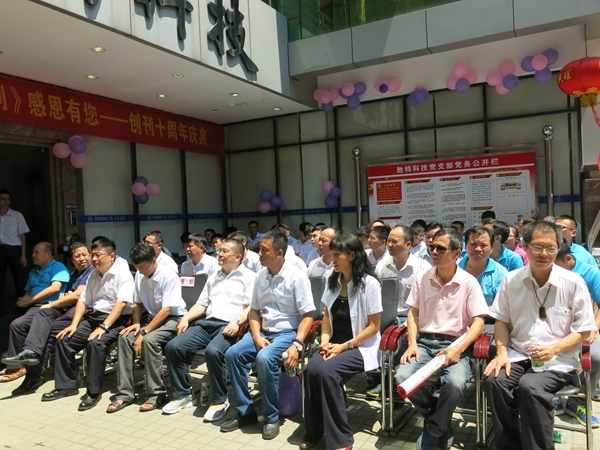 2016年7月23日下午1:30,勝特大廈小院熱鬧非凡,由勝特綜合辦公室籌備的“一路相伴 十載同行 《勝特特刊》感恩有您---創刊十周年慶典”順利開展。勝特加固公司市場拓展中心、工程管理中心、技術研發中心、成本控制中心、辦公室、勝力鑒定公司等各部門人員共60余人齊聚一起,共慶盛會。