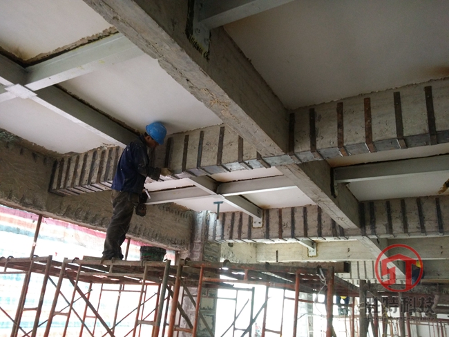 涉及加固工藝包括植筋、梁加大截面、梁底粘鋼、柱包鋼、板底增設型鋼梁。這些看似簡單而常規的加固工藝在實際施工中,由于工期緊卻給工程管理中心的同事莫大的考驗。1300萬造價的加固改造項目要求45天完工就是一個考驗,為滿足甲方工期要求,我司在春節期間就把設備、材料和各班組人員配備到位,為“打硬仗”做好前期準備工作。