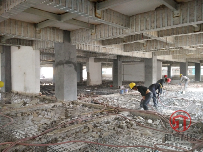 我司承接的廣州市港矩電子有限公司廠房改造加固工程,建筑約竣工于1993年,是一個綜合性加固改造項目。項目總建筑面積約20000㎡,9層框架結構,原設計樓面荷載為每平方米350公斤。現因功能改變樓面荷載需提高到每平方米800公斤,局部1噸。同時為滿足使用要求,需拆除原2、4、6、8層梁板水平構件。