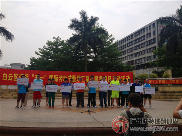 為迎接“五一”國際勞動節(jié),白云區(qū)總工會于4月29日在太和鎮(zhèn)文化廣場舉辦了“迎接五一國際勞動節(jié)暨職工系列服務(wù)項目啟動活動”。勝特建筑加固公司工會委員會組織市場拓展中心、綜合研發(fā)中心、網(wǎng)絡(luò)營銷中心的同事及工程管理中心數(shù)名工人組成了參賽團隊,代表金沙街道工會參加了活動。