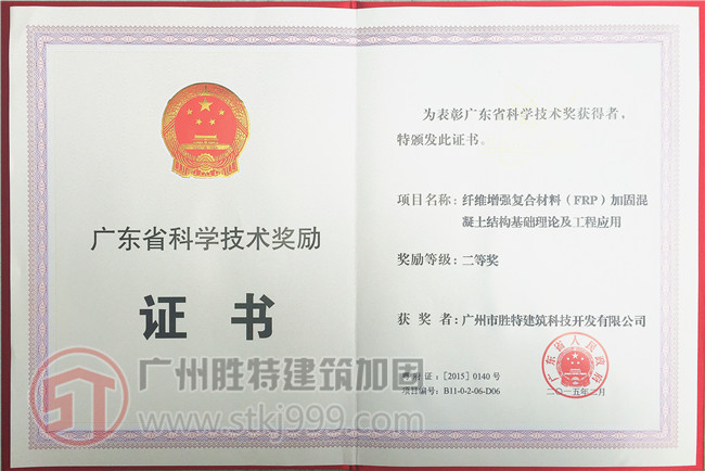 我司申報的《纖維增強復合材料(FRP)加固混凝土結構基礎理論及工程應用》技術項目獲廣東省科學技術獎二等獎。該項目是我司與廣東工業大學的產學研合作項目,董事長吳如軍先生作為主要完成人對本項目進行了研究與工程應用。