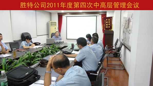 廣州勝特加固公司第四次中高層管理會議于2011年9月29日19:00在二樓會議室召開,與會人員有:董事長兼總經理吳如軍先生、副董事兼常務副總經理先生、董事兼副總經理唐穎女士、董事兼副總經理唐軍先生、董事兼深圳業務公司總經理先生、董事兼副總經理先生、副總經理陳曦先生、佛山分公司副總經理先生、綜合研發中心總經理女士、倉儲管理中心總經理唐野先生、技術研發中心副總經理先生、工程研發中心副總經理先生、工程研發中心副總經理何茂先生、廣州區域經理肖鈞先生、珠海區域經理先生、佛山區域經理先生等。