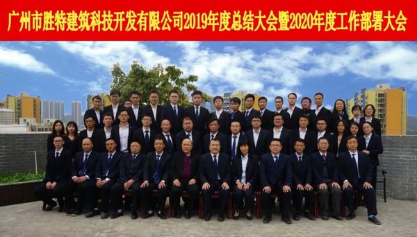 2019年12月31日,廣州市勝特建筑科技開發有限公司2019年度總結大會暨2020年度工作部署大會在會議室召開。公司董事長吳如軍、黨支部書記工會主席唐野、副總經理唐軍、唐穎、吳軍勝等主要領導班子以及公司各職能中心全體員工共50余人參加大會。會議由技術研發中心副總經理王敏主持。