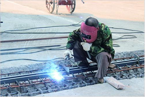工人焊接橋面鋼條
