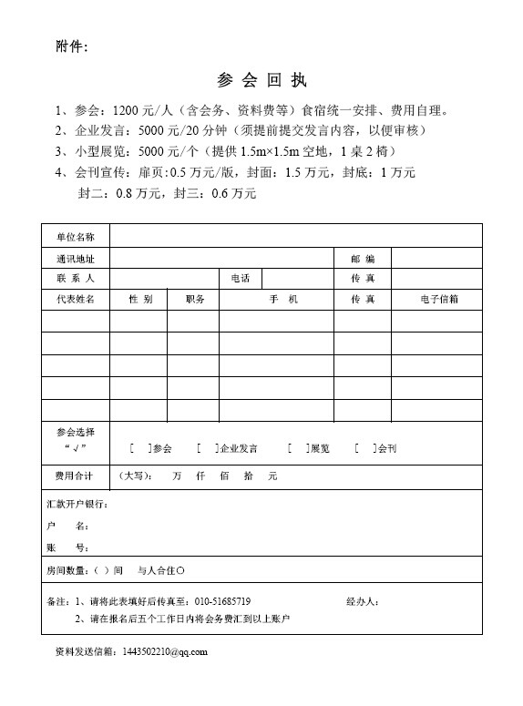 (3)企業代表可在會上發放介紹企業的廣告、宣傳資料等,每單位代表除按一般 代表收取會議費外,另收5000元資料交流費。