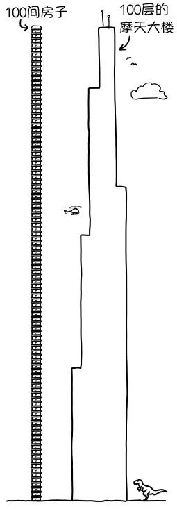 一座超級(jí)摩天大樓或許能有100層,說白了就是100套平房疊起來。