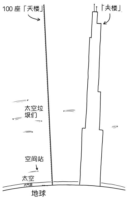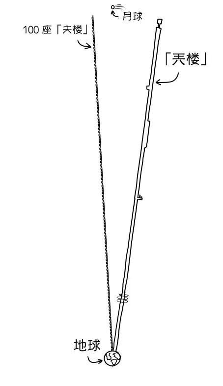 好,我們把100座這樣的「大樓」疊成個(gè)「天樓」,樓頂還差一半就能到外太空了。