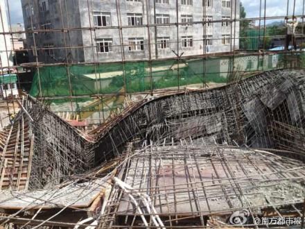 據悉 7月27日下午1時40分許,惠州一在建樓盤——中鍇華章3期18號樓2樓發生垮塌,所幸當時沒有工人在施工,所以無人傷亡。施工方稱,垮塌面積為2跨100多平方米,初步懷疑支撐鋼架被布料機搖松所致。