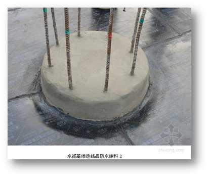 樁頭頂面和側面祼露處應涂刷水泥基滲透結晶型防水涂料,并延伸至結構底板墊層150mm處;樁頭周圍300mm范圍內(nèi)應抺聚合物水泥防水砂漿過渡層。