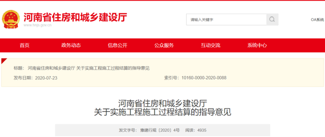近日,河南省住建廳下發(fā)《關于實施工程施工過程結(jié)算的指導意見》。