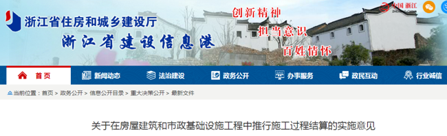 2020年5月20日,浙江省住建廳發(fā)布《關于在房屋建筑和市政基礎設施工程中推行施工過程結(jié)算的實施意見》:自6月20日起,在全省房建和市政項目中全面推行施工過程結(jié)算。